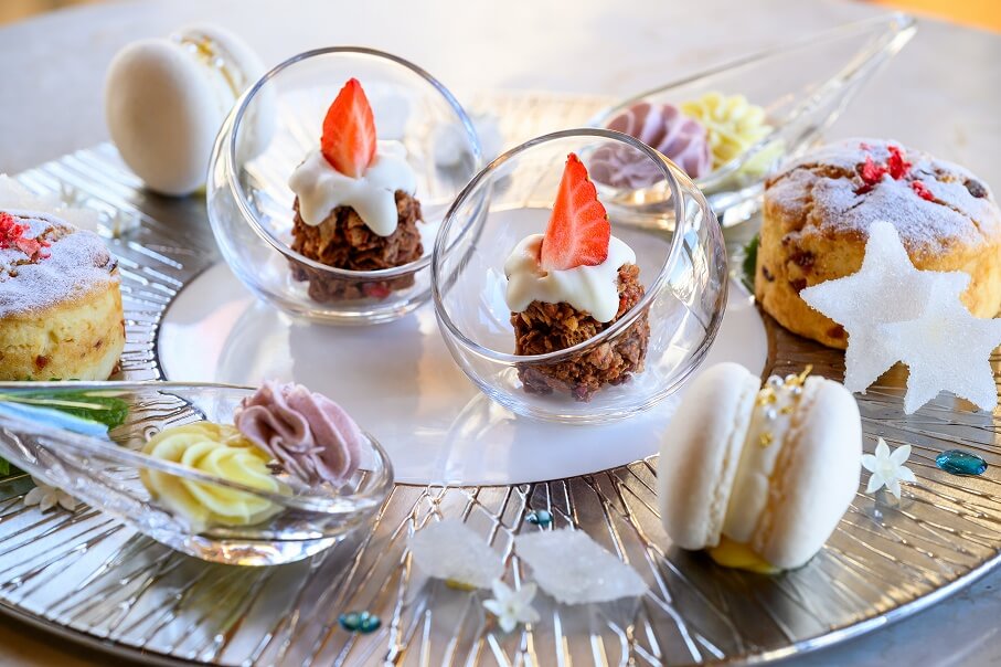 色とりどりで見た目も華やかなアフタヌーンティー。