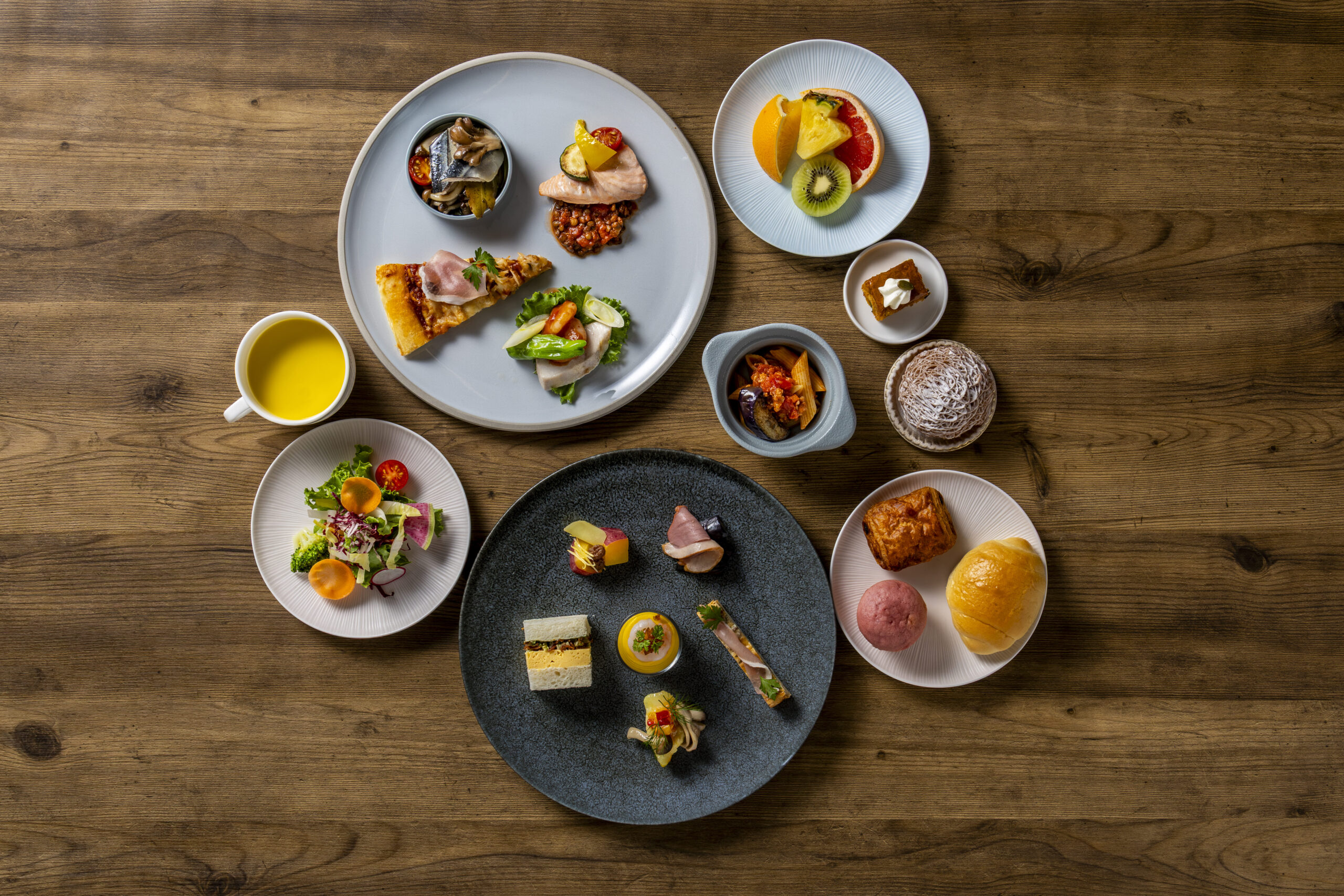 ディナーメインディッシュでは、兼てから好評のローストビーフ&ガーリックシュリンプに蝦夷鹿肉のロースト。桜チップの瞬間燻製サーモンをはじめ、塩麹と林檎でマリネした豚ロースのグリエ、牛肉をオリオンビールで煮込んだカルボナード、温かい焼き芋プティングや沖縄の風味豊かなシークヮーサータルトが今回のフェアのおすすめ。